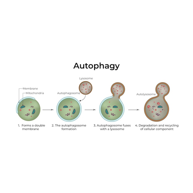 Autophagy, derived from Greek words meaning “self-eating”, is an essential cellular cleanup mechanism where cells degrade and recycle their own components. This not only helps eliminate damaged parts but also provides the energy or building materials necessary for cellular repair and renewal.