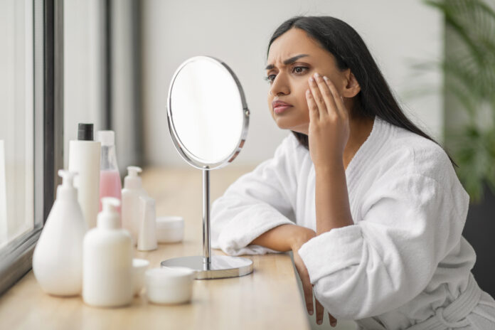Using too many products or harsh chemicals can also damage the skin barrier, making the skin appear lifeless.